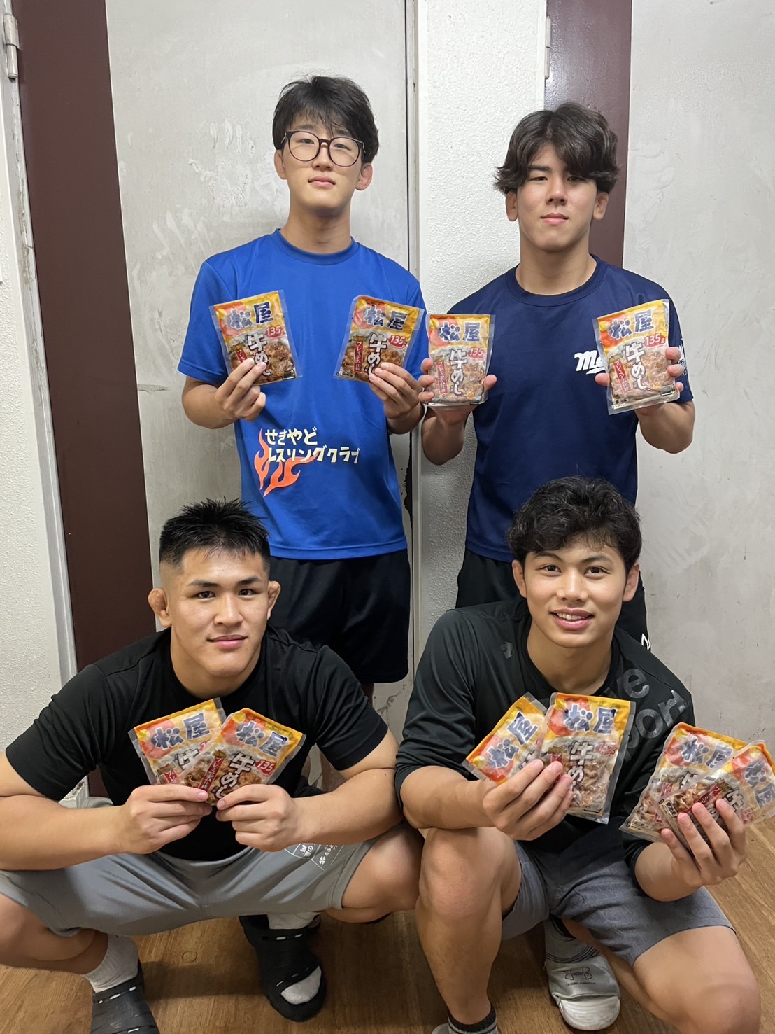 差し入れをいただきました! 2025 9/20 NEWS 差し入れ 関係者ページ OBの方から牛めしの差し入れをいただきました。ありがとうございます。 部員全員で美味しくいただき、より一層練習に励みます! NEWS 差し入れ 関係者ページ 全日本学生レスリング選手権大会結果 お肉の差し入れをいただきました! 関連記事 学長・理事長を表敬訪問しました 2023年1月26日 保護中: OBの宮原先輩からお米を差し入れて頂きました。 2023年1月31日 OBの山田先輩からお肉を差し入れて頂きました。 2023年1月31日 保護中: OB山田先輩からお肉の差し入れをいただきました。 2023年3月21日 保護中: 4年ぶりに歓送迎会が開催されました。 2023年3月21日 保護中: OB宮原先輩からお米の差し入れをいただきました。 2023年4月30日 【明治大学父母会寄付講座】を行います。 2023年5月1日 保護中: 【見逃し配信】5/1 明大スポーツ全力応援宣言!この感動を地方に。全国に。(レスリング部)【明治大学父母会寄付講(オンライン)】 2023年5月14日